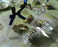 袋を立体的な三角形にして、そこにクッキー入れて、リボンを ちょこ って付けました。